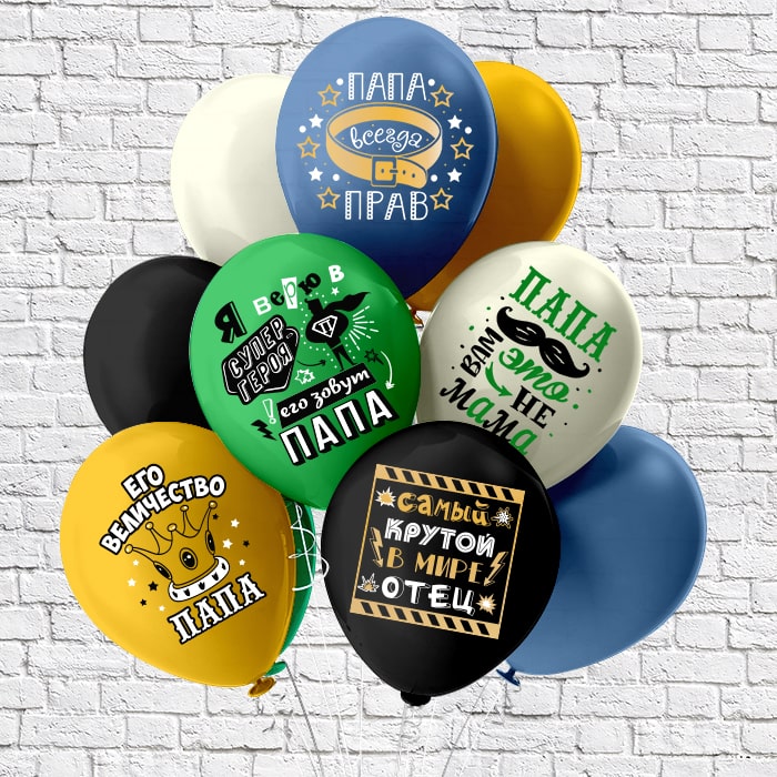 Специально для наших любимых папочек созданы впечатляющие воздушные шарики! Разноцветные шары с забавными надписями и комплиментами растрогают даже самого серьезного и строго отца.