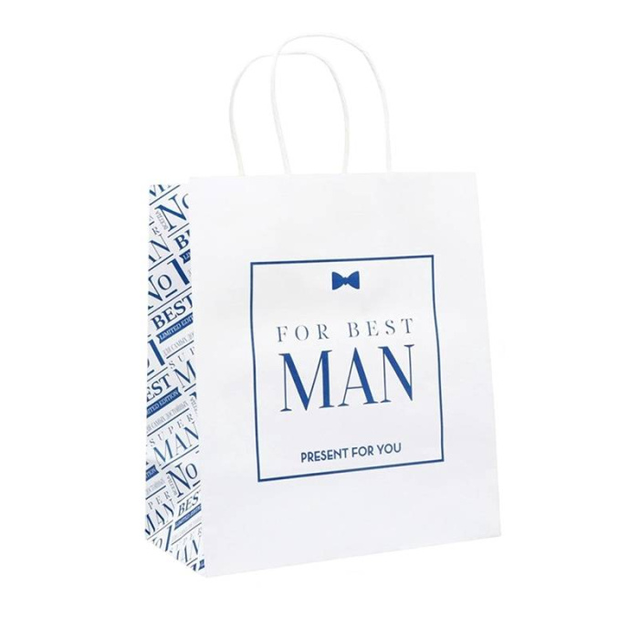 Пакет Подарочный Best Man, Белый с Синим, Крафт 22/25см