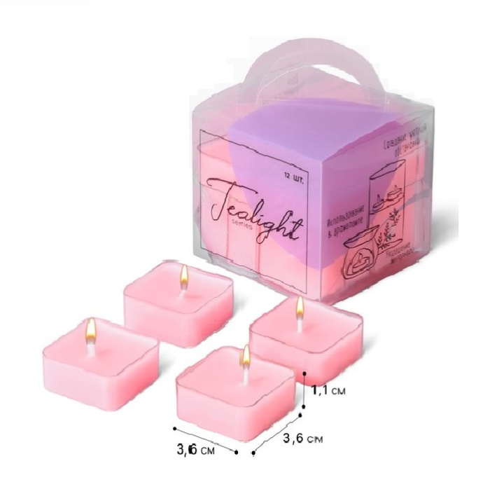 Свечи Чайные Квадратные в Прозрачной Гильзе 4см/12шт