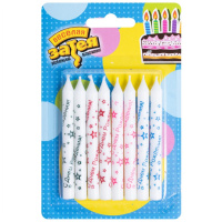 Свечи Белые с Рисунком, Звезды Серебро, Держатели 7,5см/6шт