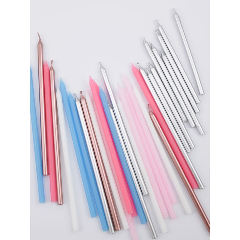 Набор свечей представлен в однотонном классическом варианте серебряного металлизированного цвета Уникальный размер 15 см и гладкая форма свечи эстетично дополнит самые лаконичные дизайны праздничного торта.