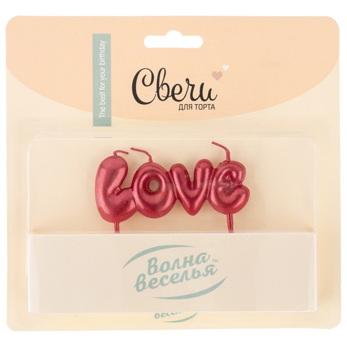 Свеча Love, Красный Металлик, Надпись на Пиках 4/7,5см