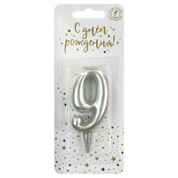 Свеча Цифра Серебро, Стильная "9"