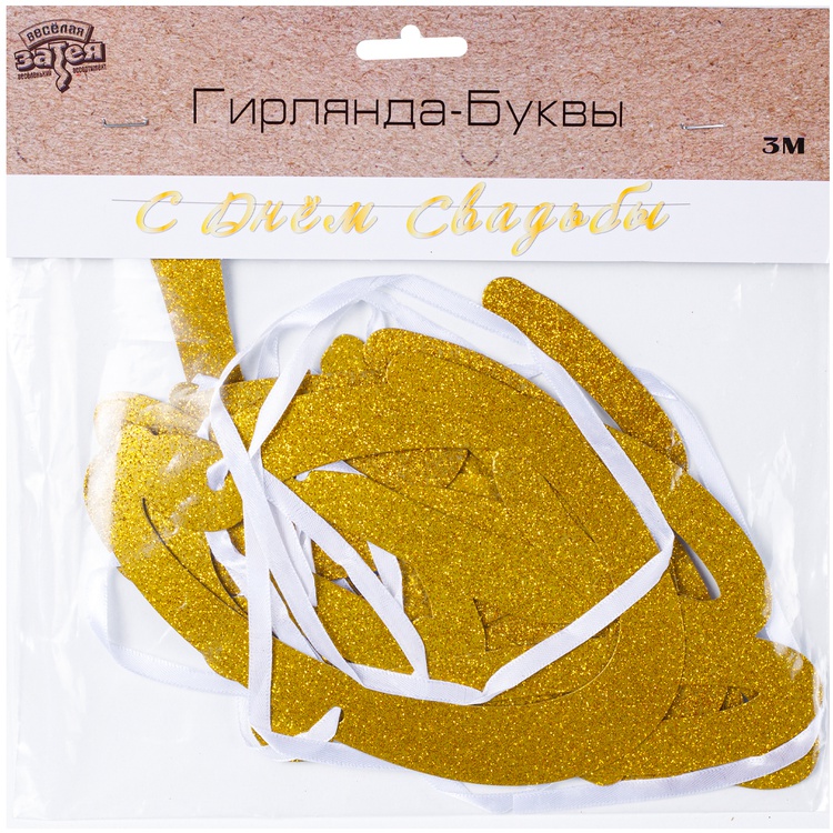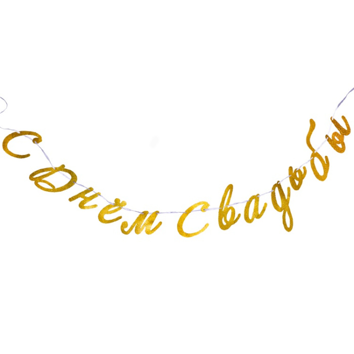 Гирлянда - Буквы С Днём Свадьбы! Золото Глиттер 3м