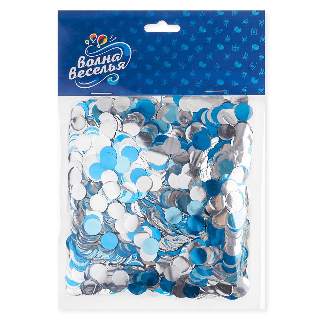 Конфетти Круги Голубой Микс, Металлик 1см/50гр