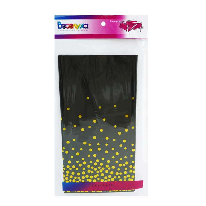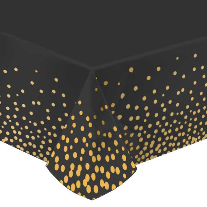 Скатерть Конфетти Золотое на Черном, Металлик 1,37/1,83м