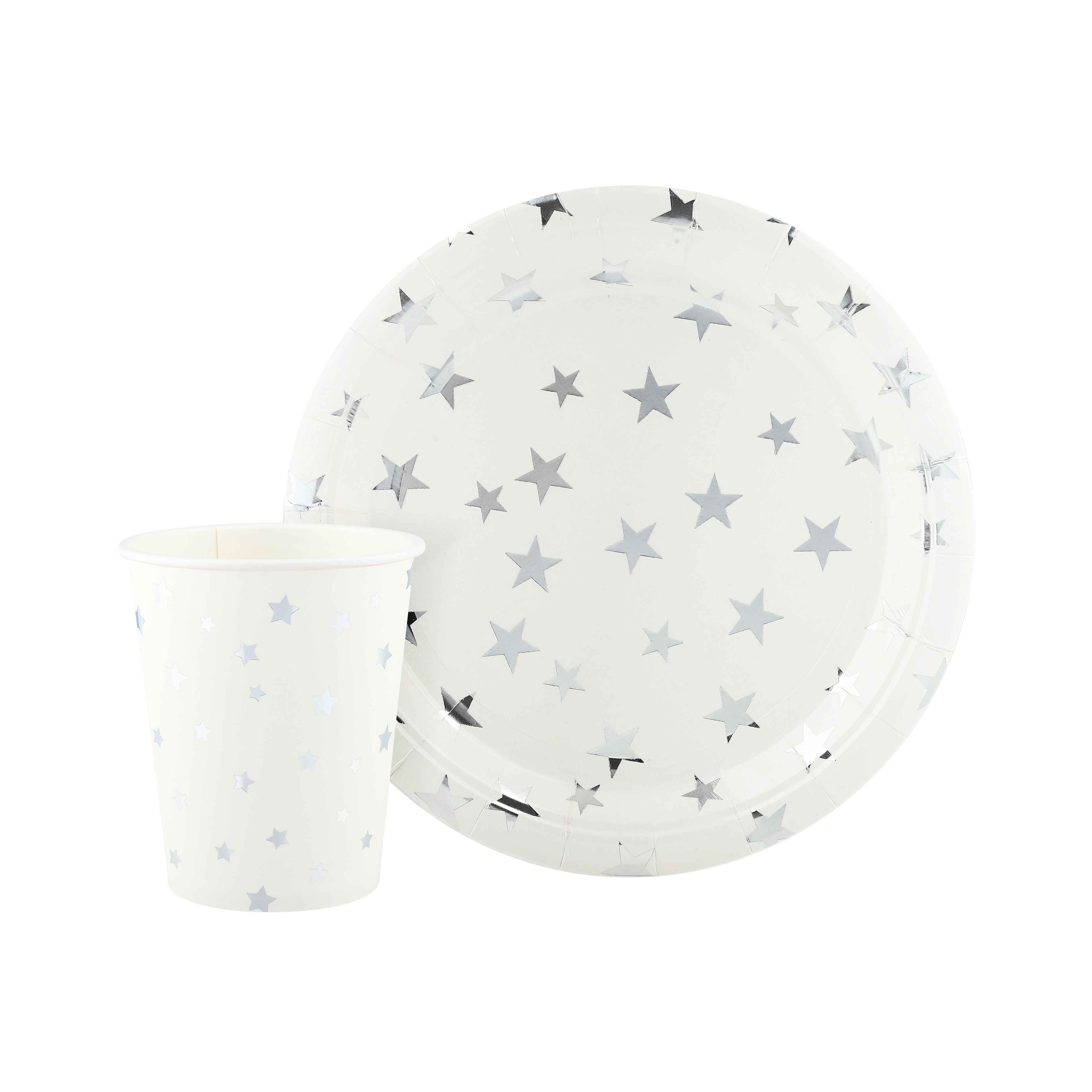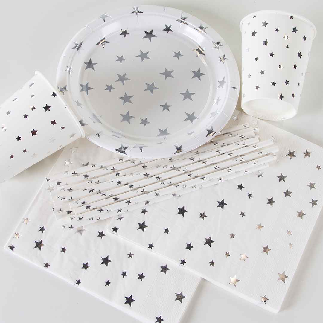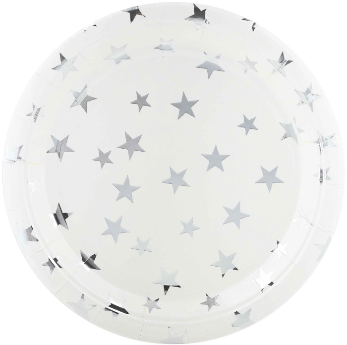 Тарелки Звезды Серебро на Белом 18см/6шт