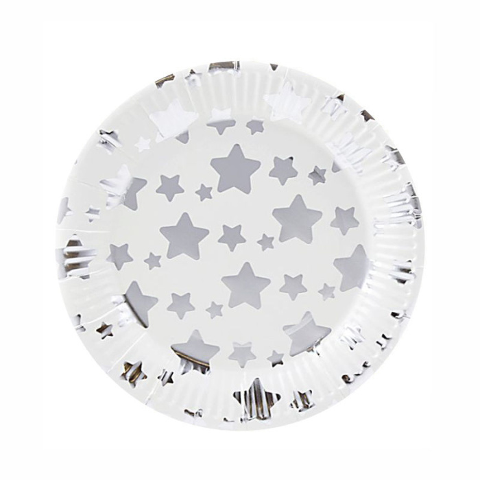 Тарелки Звезды Серебро на Белом 18см/6шт