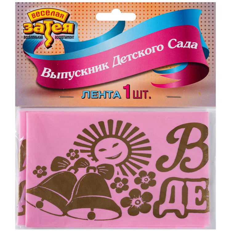 Розовая лента с золотыми буквами ""Выпускник Детского Сада"" и солнышком - украшение для самого первого выпускного!