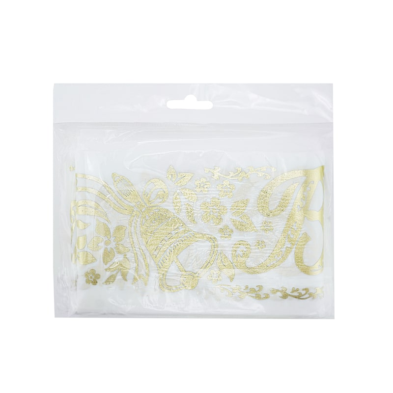 Белая лента с тиснением фольгой – праздничный вариант популярного аксессуара.