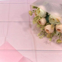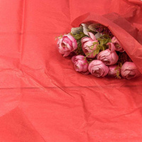 Водостойкая тишью - это нежная тонкая бумага, которая не размачивается в воде. Благодаря ей можно красиво заполнить пространство в букете, сделать букет пышным и объемным. Тишью с ламинацией обладает хорошей памятью: будет держать ту форму, которую ей зададут.