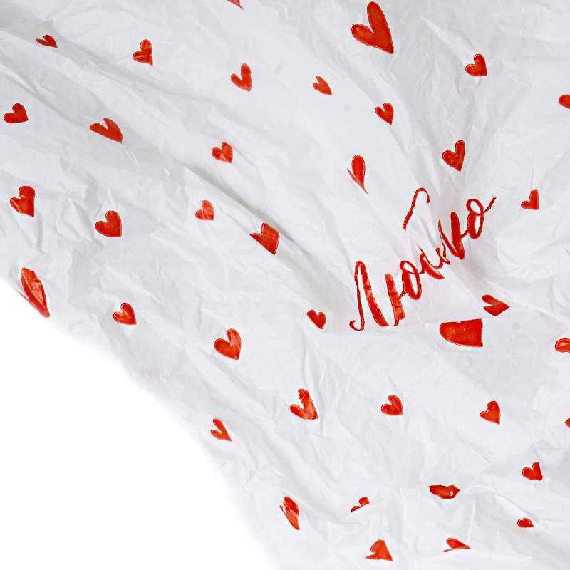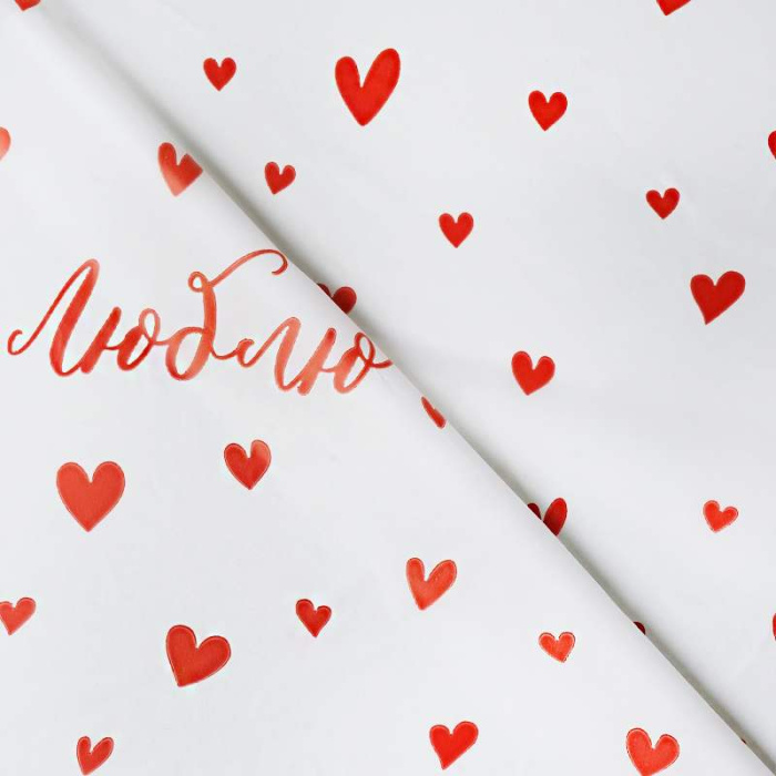 Пленка Тишью Люблю, Сердца на Белом, Водостойкая 0,6/10м